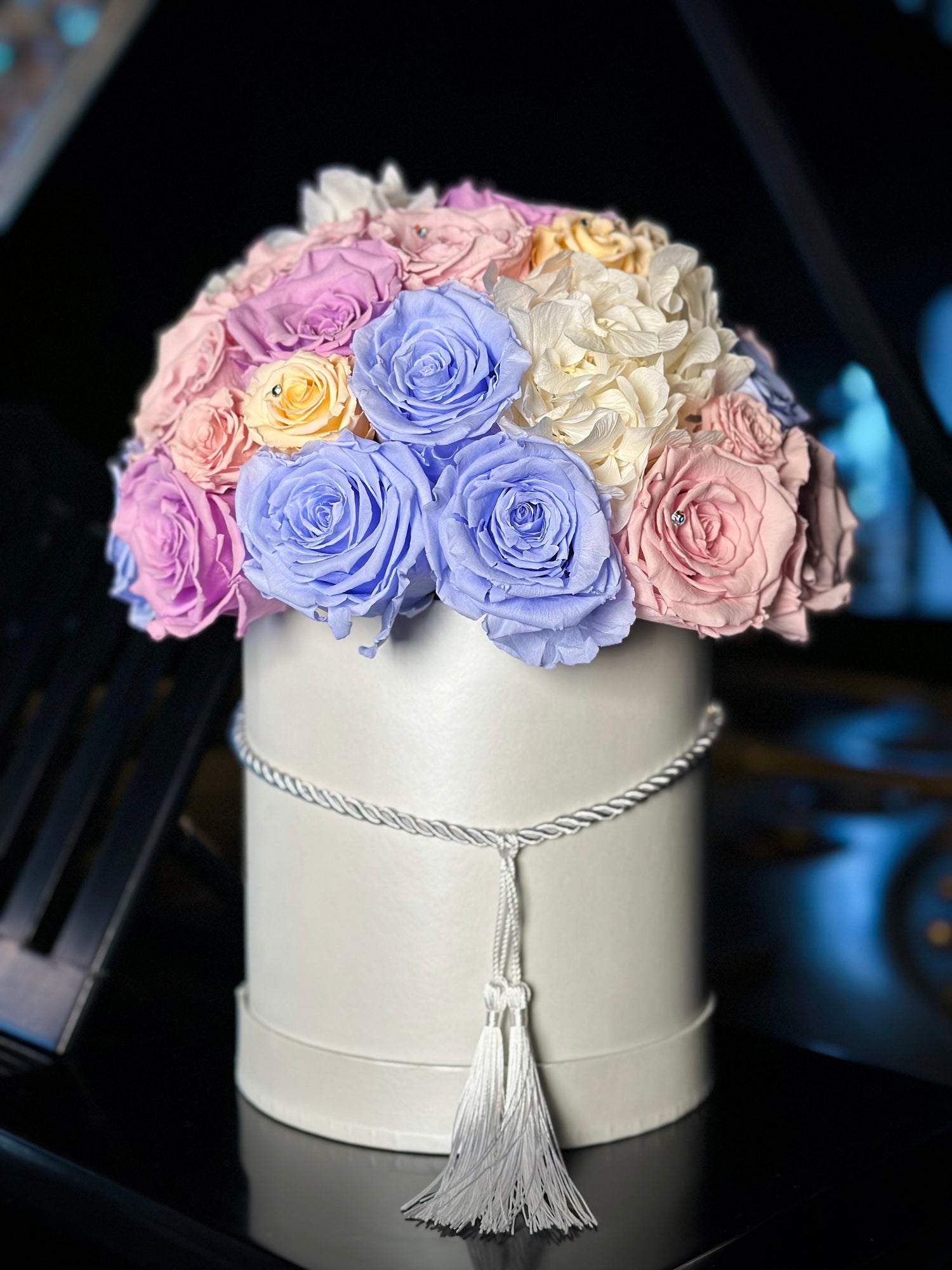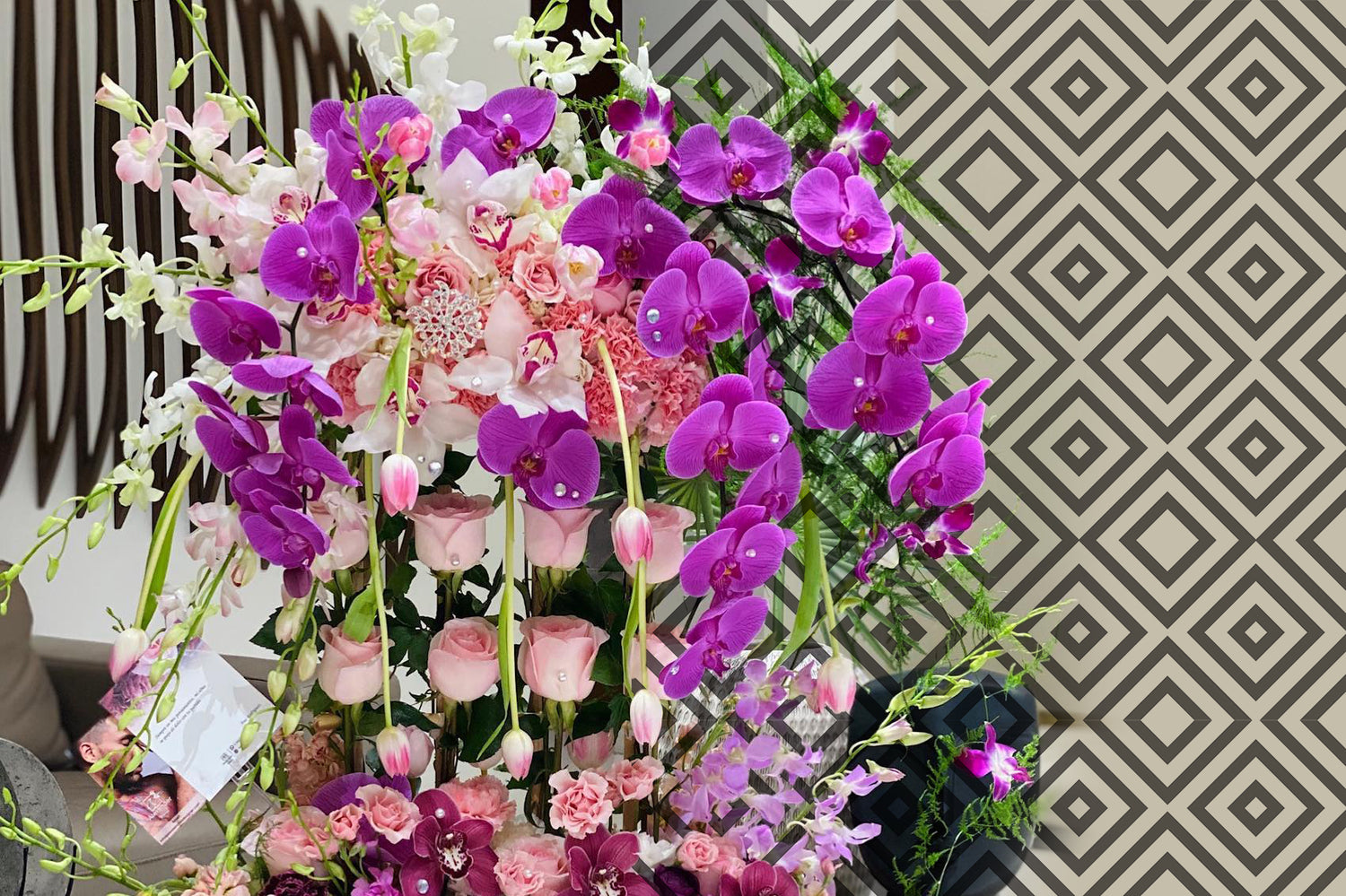 These delicate compositions tell a story and add a touch of elegance to any setting. With their unique design and attention to detail, they are sure to make a lasting impression. Each piece is a luxurious work of art, meticulously designed using the highest quality flowers and complemented with pearls and crystals.